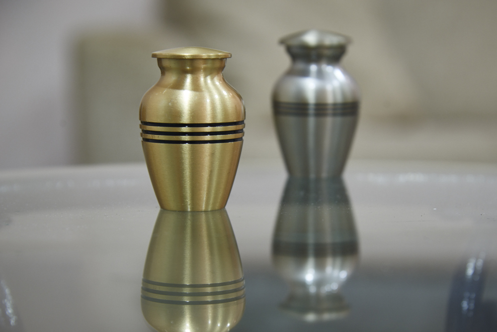 Den e sala di muestra na Nieuwe haven, por skohe entre diferente modelo di urna pa warda e shinishi di bo kerido defuntu. Nos di El Tributo ta konsiente ku smak di hende ta varia, ta p’esei nos a sòru pa un surtido amplio pa asina por kumpli ku mayoria di deseo: sea ku ta un urna di serámika, metal òf unu di palu. Tantu pa esnan ku ke algu sutil òf pa esnan ku ke algu mas ekspresivo. Tambe ta posibel pa repartí e shinishi den diferente urna (keepsake), di manera ku mas miembro di famia por keda ku un rekuerdo.